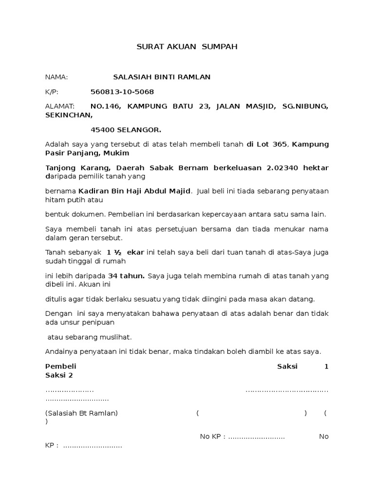 Surat Akuan Sumpah (Ksal) PDF
