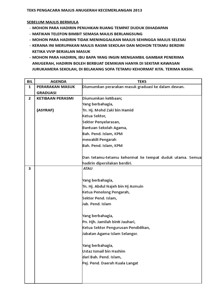 Teks MC Majlis Anugerah Kecemerlangan 2016 PDF